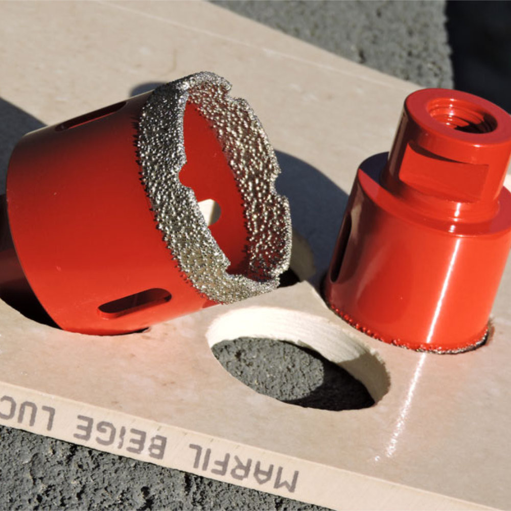 A Diatech piros gyémántfúró 130 mm M14-es befogással ideális megoldás sarokcsiszolóra, amikor precíz, tiszta fúrásra van szükség burkolólapokon.