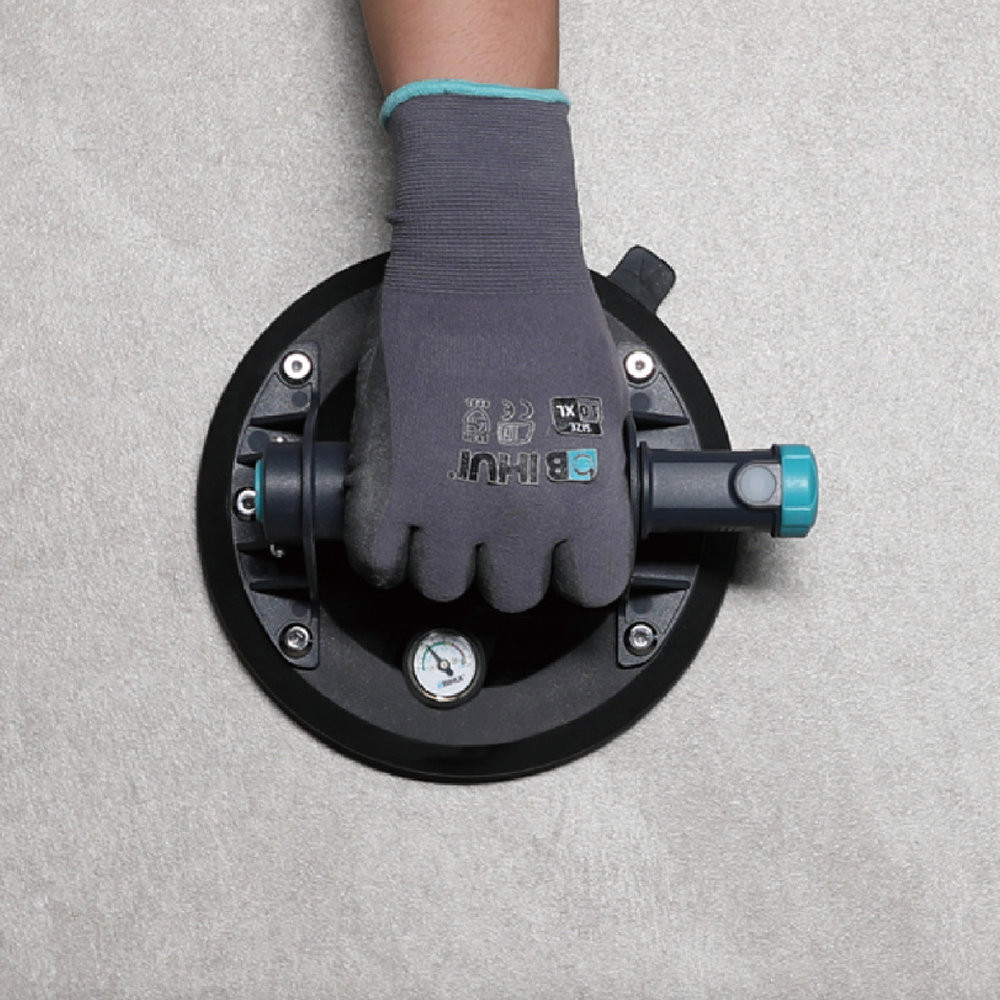 A BIHUI SCBS8 egy 203 mm átmérőjű vákuumos tapadókorong, amelyet sima és strukturált burkolólapokhoz terveztek, például porcelán, gres, kő vagy üveg anyagokhoz. A készlet lehetővé teszi a vákuum létrehozását kézi pumpával vagy a beépített elektromos pumpával, így a felhasználó a munkakörnyezetnek és a saját igényeinek megfelelő üzemmódot választhat.